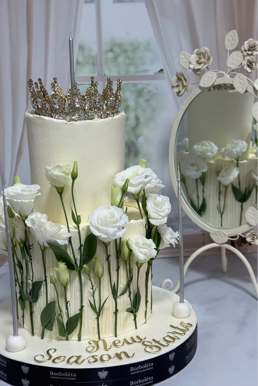 Lisyantus Çiçekli Taçlı Simli Pasta