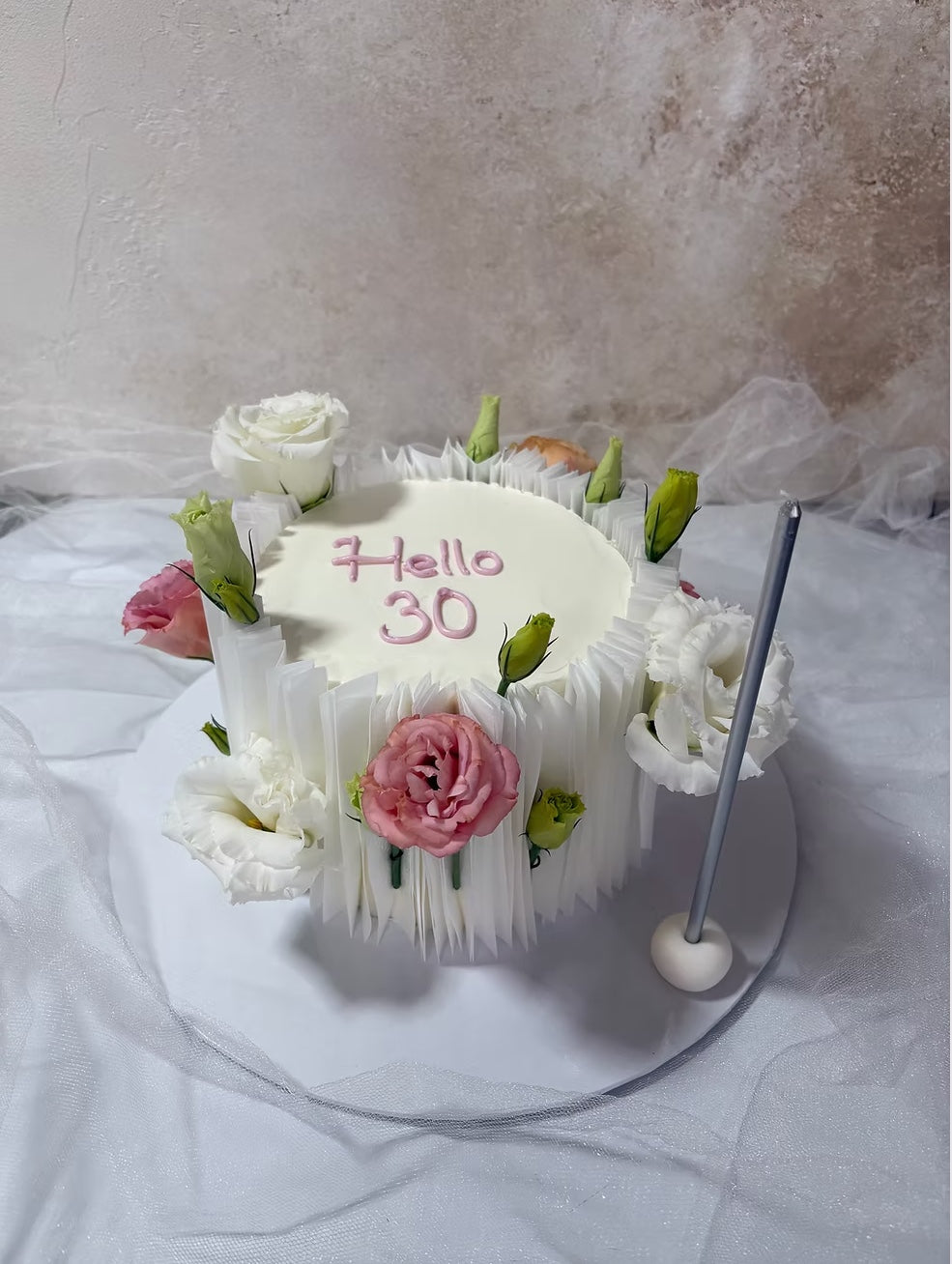 Yenilebilir Kağıtlı Çiçekli Pasta