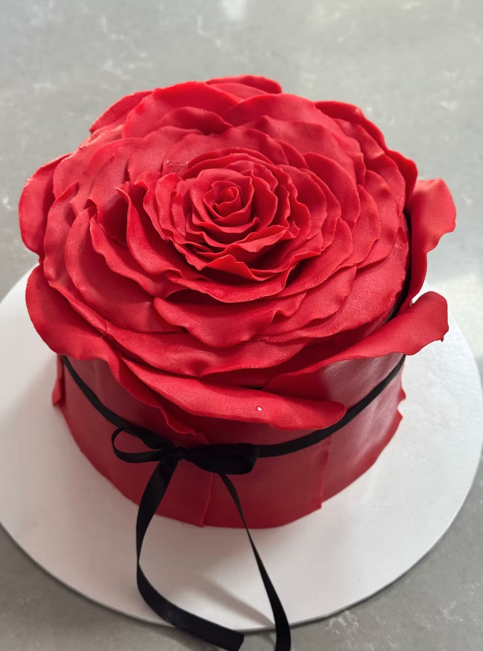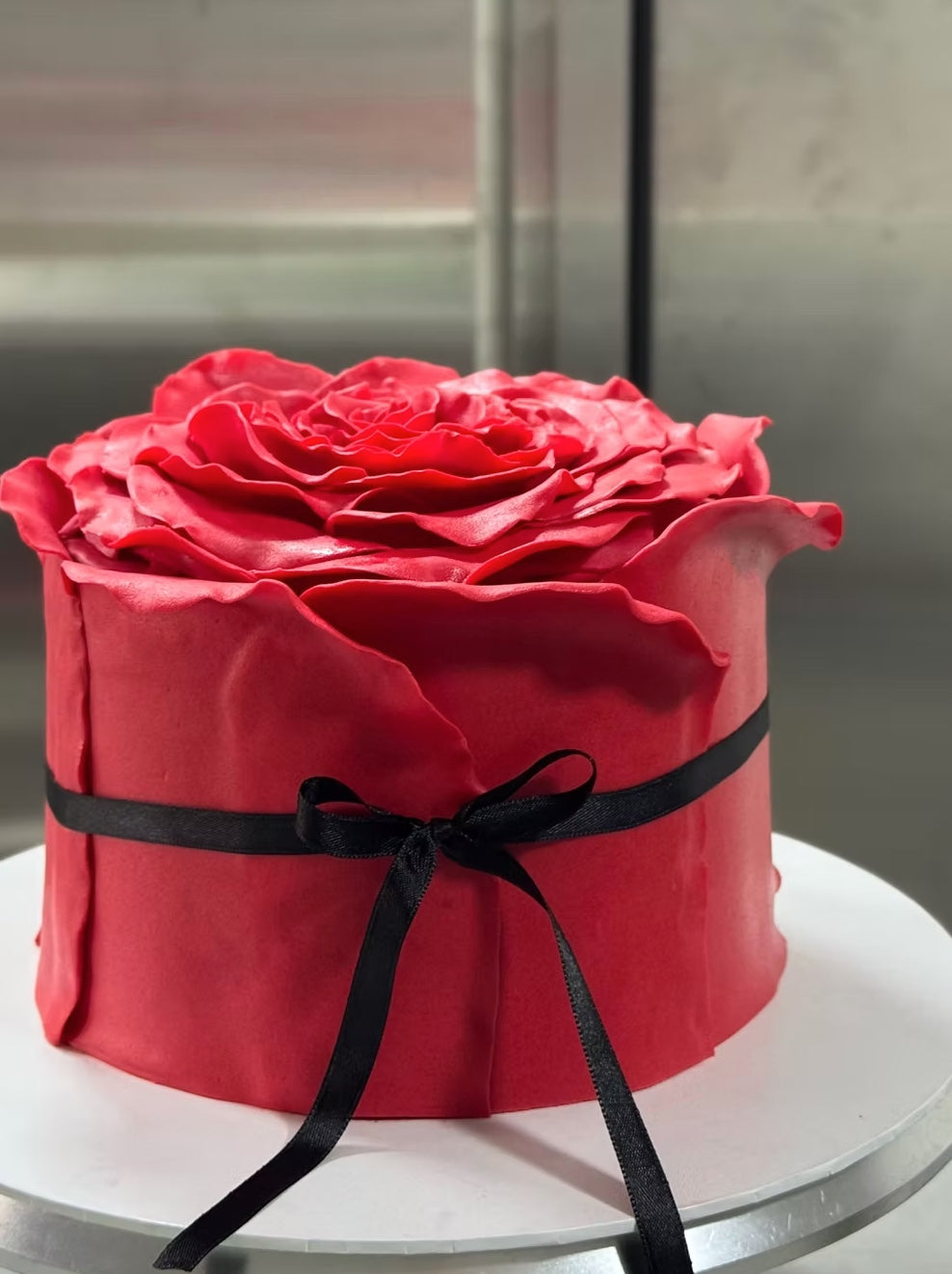Kırmızı gül şeklinde 3 boyutlu pasta
