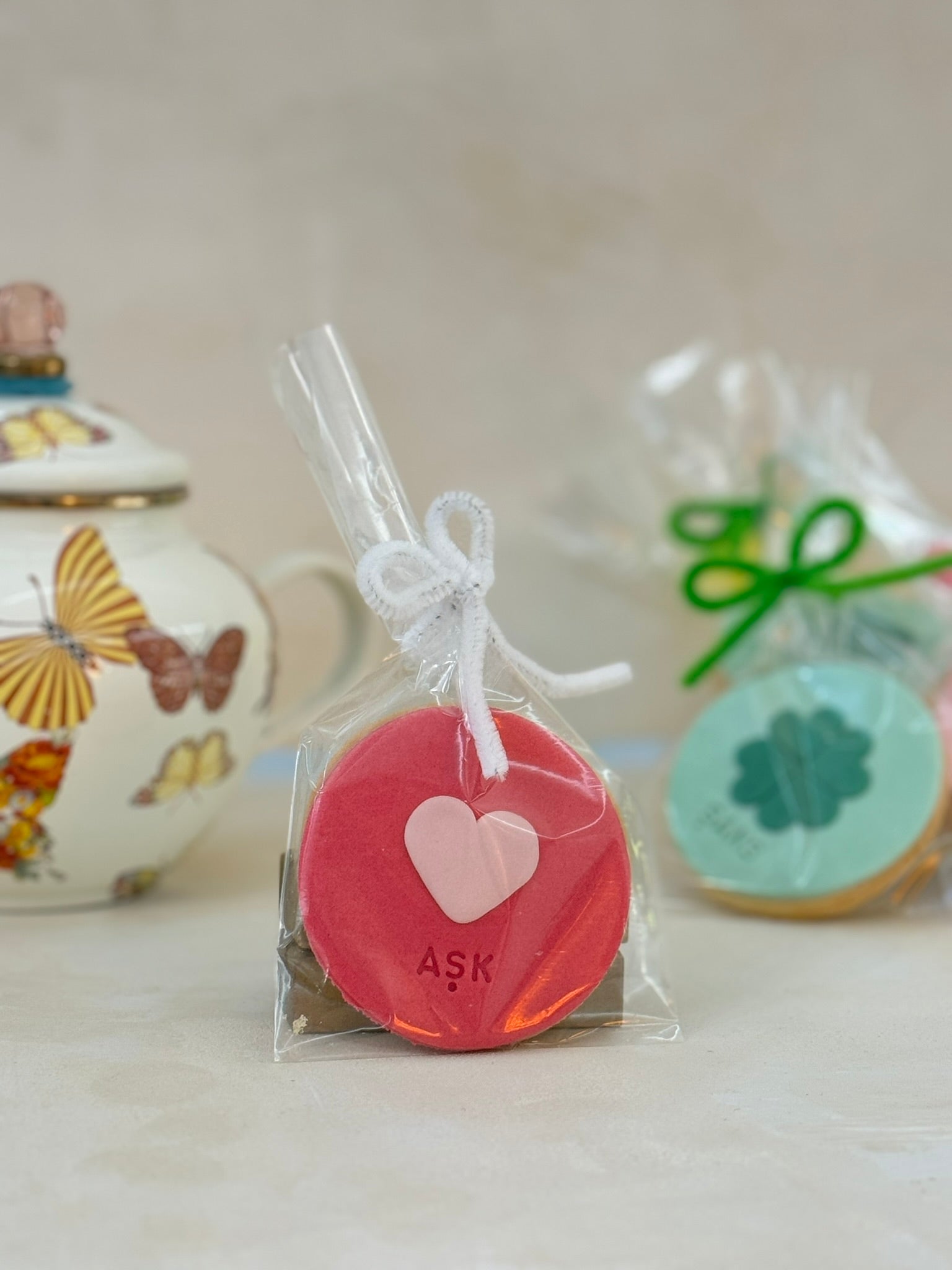 Kişiselleştirilebilir şeker hamurlu kurabiyeler. İstediğiniz renk ve şekilde sipariş vermek için bize ulaşın!